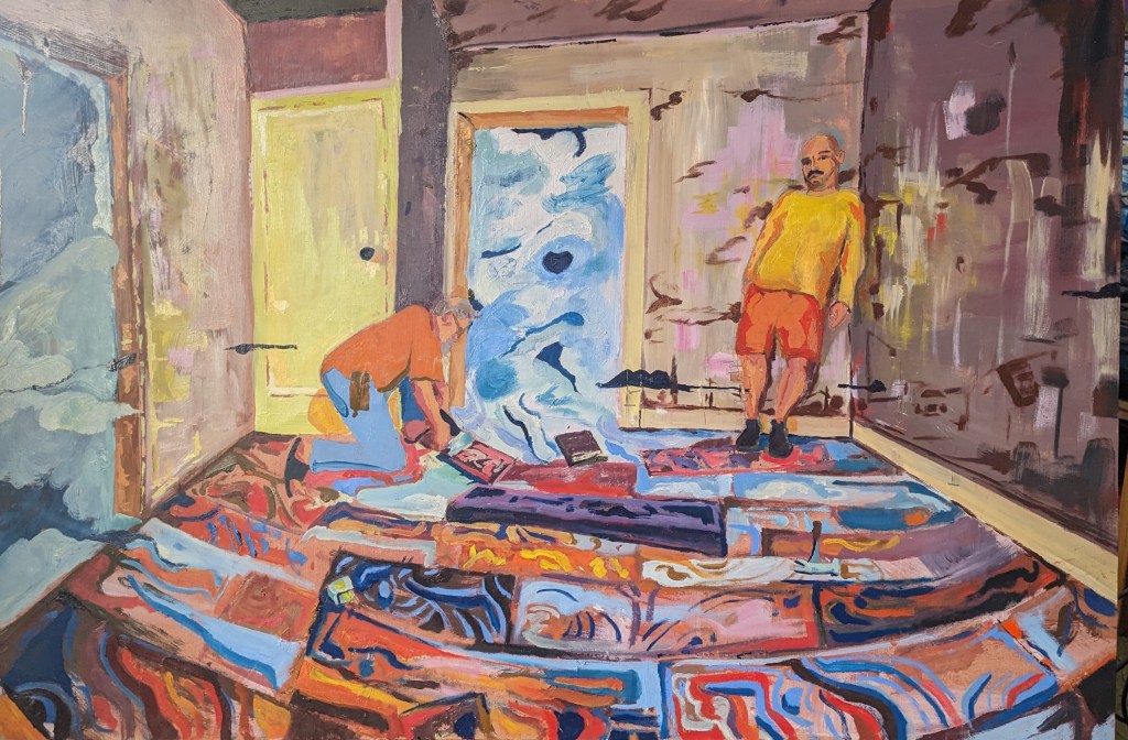 Here’s an in progress painting of me and the dudes in progress on making a floor.